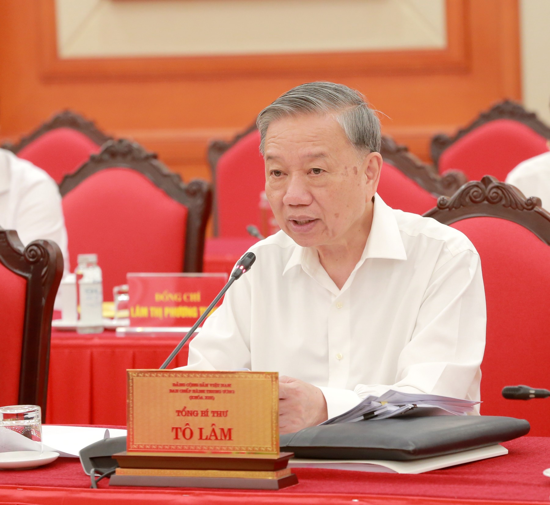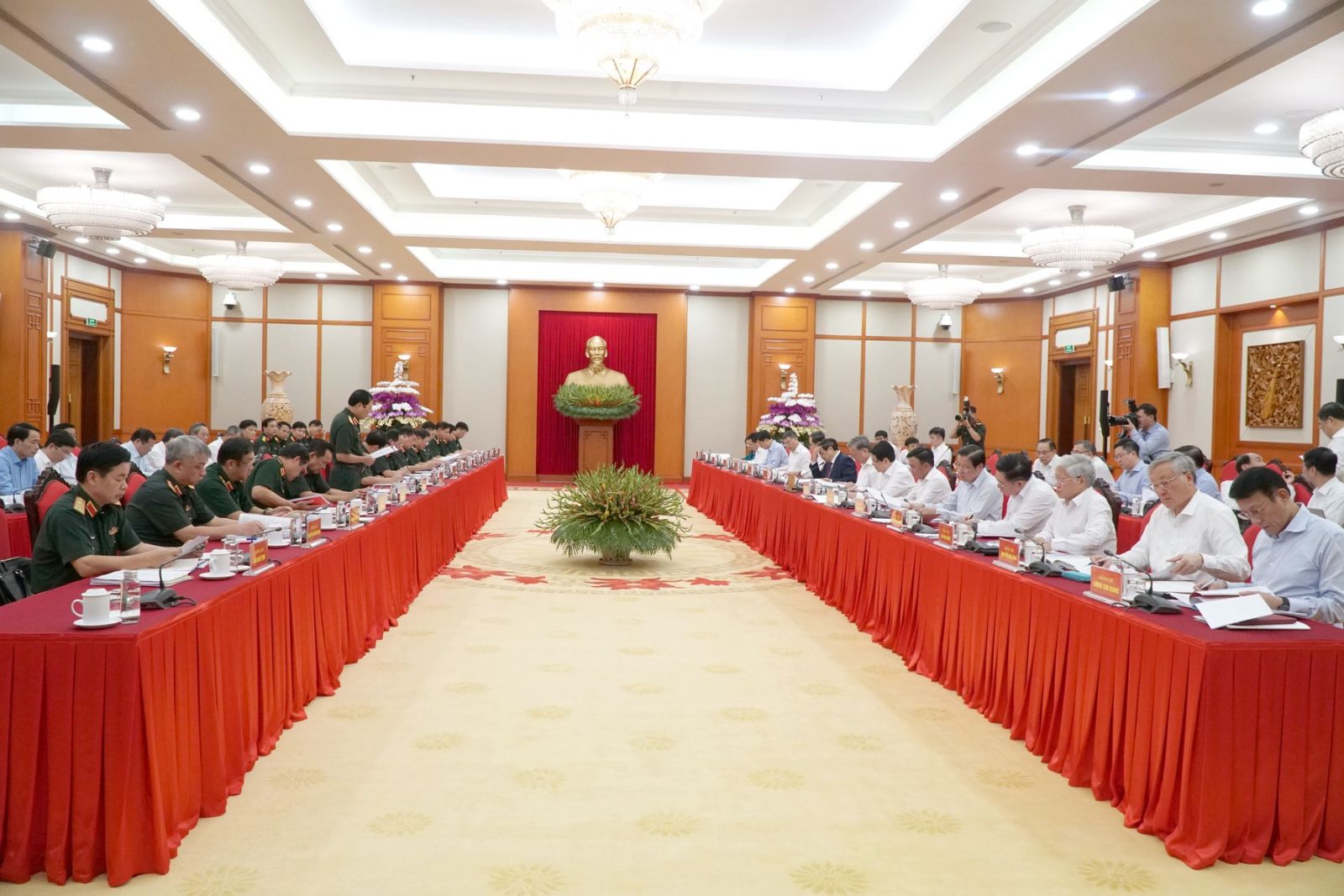 (ĐCSVN) - Ngày 25/8/2025, tại Trụ sở Trung ương Đảng, dưới sự chủ trì của đồng chí Tô Lâm, Tổng Bí thư Ban Chấp hành Trung ương Đảng Cộng sản Việt Nam, Bí thư Quân uỷ Trung ương, tập thể Bộ Chính trị đã làm việc với Ban Thường vụ Quân uỷ Trung ương để cho ý kiến vào dự thảo văn kiện và phương án nhân sự trình Đại hội đại biểu Đảng bộ Quân đội lần thứ XII, nhiệm kỳ 2025 - 2030.