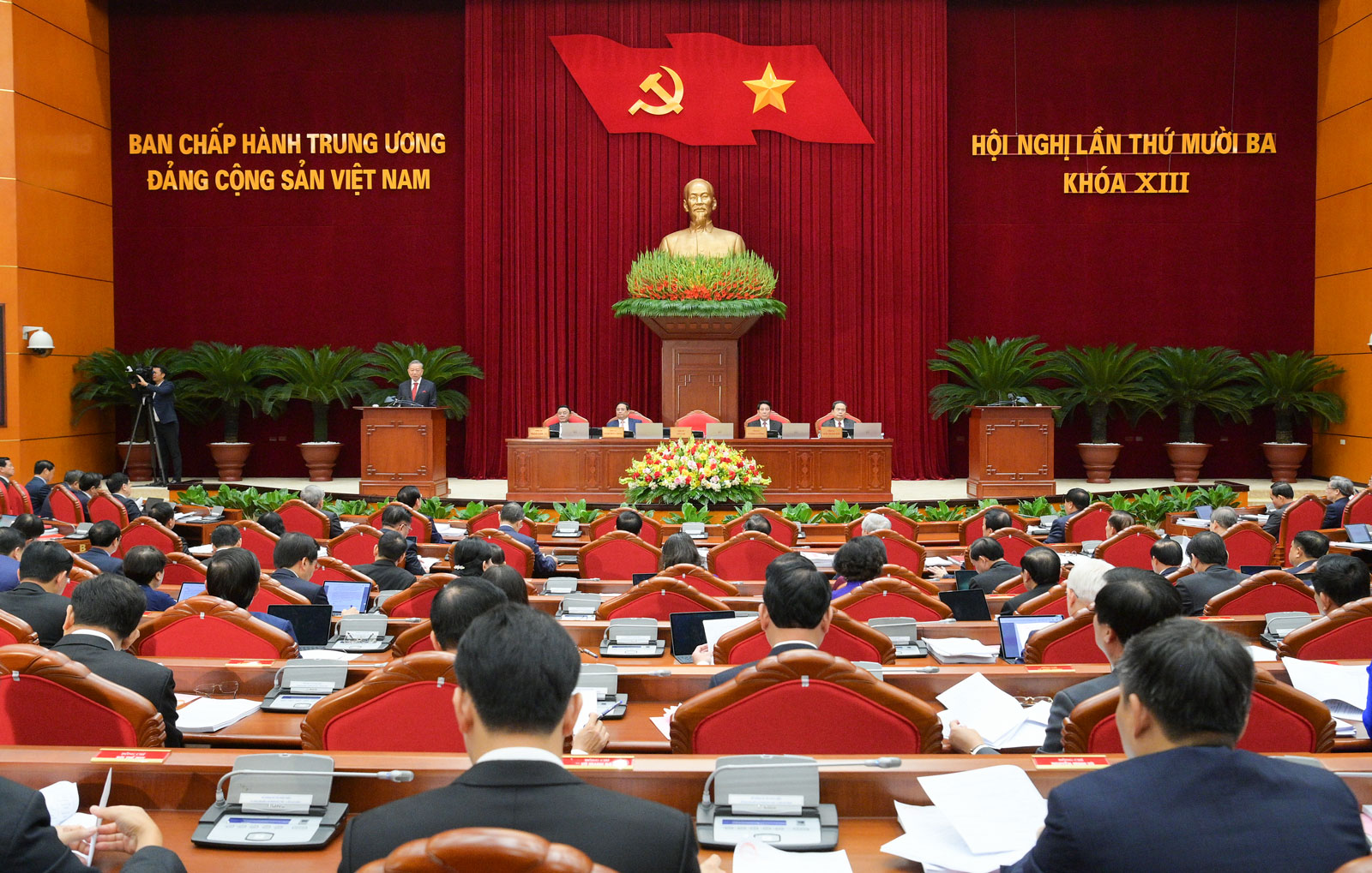 (ĐCSVN) - Tại Hội nghị này, Bộ Chính trị báo cáo Trung ương cho ý kiến đối với Tờ trình về kết quả và phương án giới thiệu nhân sự tham gia Ban Chấp hành Trung ương khóa XIV, tham gia Ủy viên Ủy ban Kiểm tra Trung ương khóa XIV và tiến hành lấy phiếu biểu quyết giới thiệu nhân sự Ban Chấp hành Trung ương, Ủy ban Kiểm tra Trung ương theo quy định. Tổng Bí thư đề nghị khi lựa chọn giới thiệu nhân sự phải đặt lợi ích của Đảng, của quốc gia, dân tộc lên trên hết, trước hết.
