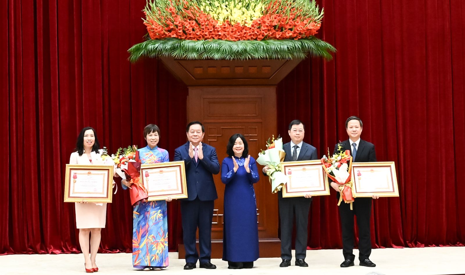 Đồng chí Thường trực Ban Bí thư Trần Cẩm Tú trao Huân chương Lao động hạng Nhất tặng các cơ quan có thành tích xuất sắc, đột xuất trong công tác tham mưu, tổ chức, phục vụ Đại hội XIV của Đảng.