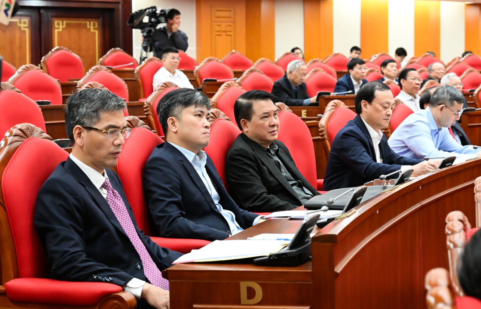 Dự Hội nghị có các đồng chí Ủy viên Bộ Chính trị: Bùi Thị Minh Hoài, Bí thư Trung ương Đảng, Chủ tịch Ủy ban Trung ương Mặt trận Tổ quốc Việt Nam; Nguyễn Trọng Nghĩa, Bí thư Trung ương Đảng, Chủ nhiệm Tổng cục Chính trị Quân đội nhân dân Việt Nam; Lê Hoài Trung, Bộ trưởng Bộ Ngoại giao; Phạm Gia Túc, Bí thư Trung ương Đảng, Chánh Văn phòng Trung ương Đảng; Đoàn Minh Huấn, Giám đốc Học viện Chính trị quốc gia Hồ Chí Minh.