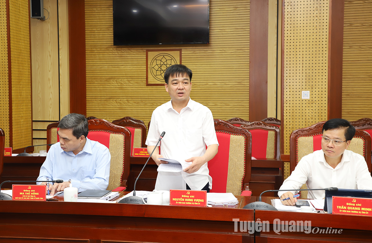 Đồng chí Hầu A Lềnh, Ủy viên Ban Chấp hành Trung ương Đảng, Bí thư Tỉnh ủy chủ trì hội nghị. Dự hội nghị có các đồng chí: Lê Thị Kim Dung, Phó Bí thư Thường trực Tỉnh ủy; Nguyễn Văn Sơn, Phó Bí thư Tỉnh ủy, Chủ tịch HĐND tỉnh; Phan Huy Ngọc, Phó Bí thư Tỉnh ủy, Chủ tịch UBND tỉnh; Ma Thế Hồng, Phó Bí thư Tỉnh ủy. Các đồng chí Ủy viên Ban Thường vụ Tỉnh ủy; đại biểu các ban Đảng Trung ương theo dõi tỉnh Tuyên Quang.