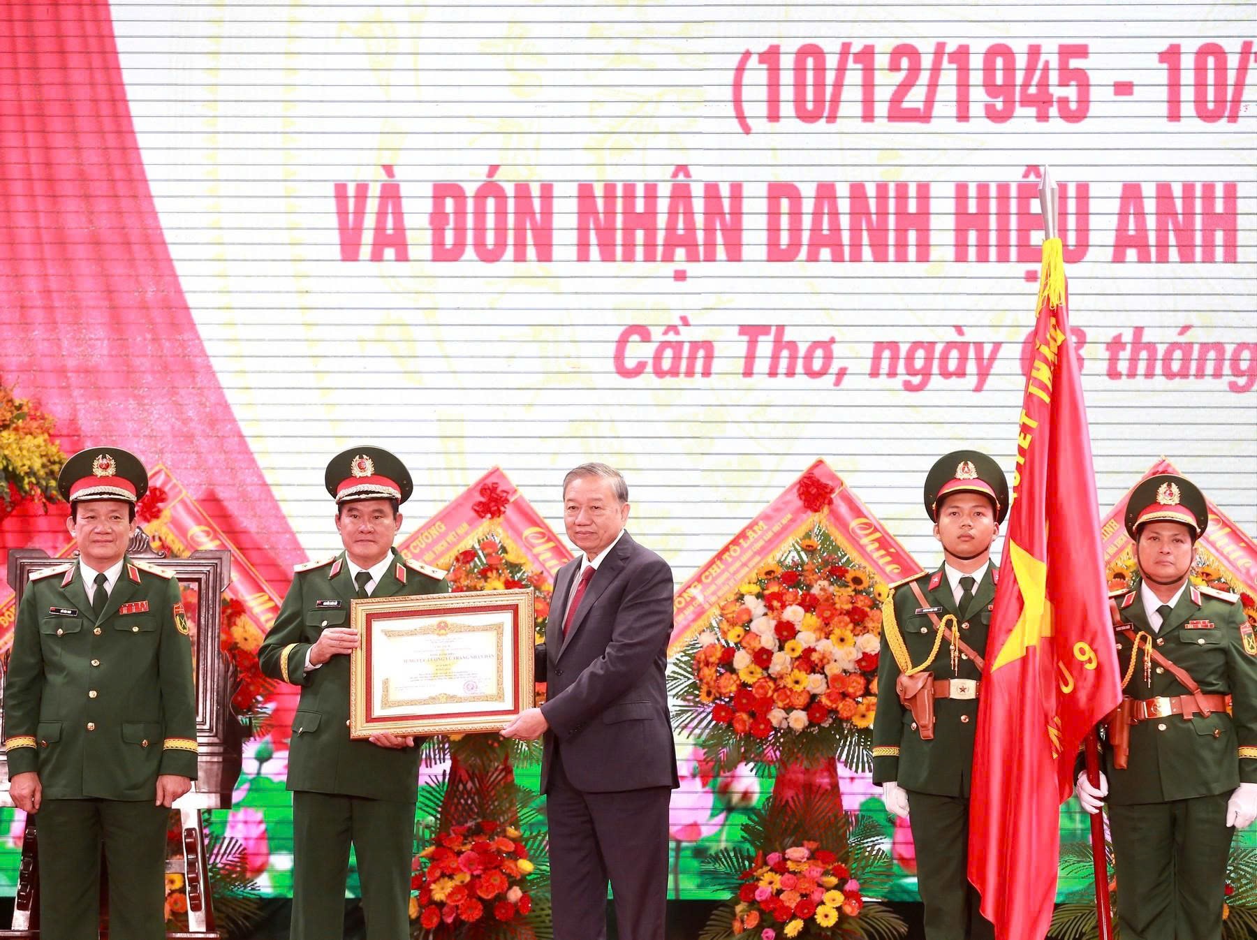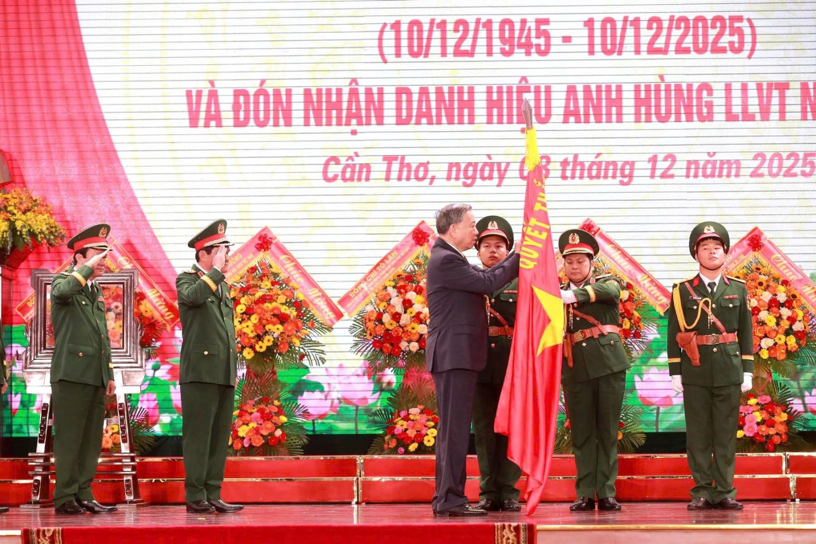 Tổng Bí thư Tô Lâm, Bí thư Quân ủy Trung ương phát biểu chỉ đạo tại Lễ Kỷ niệm 80 năm ngày truyền thống LLVT Quân khu 9 (10/12/1945 - 10/12/2025) và đón nhận danh hiệu Đơn vị Anh hùng Lực lượng vũ trang Nhân dân.