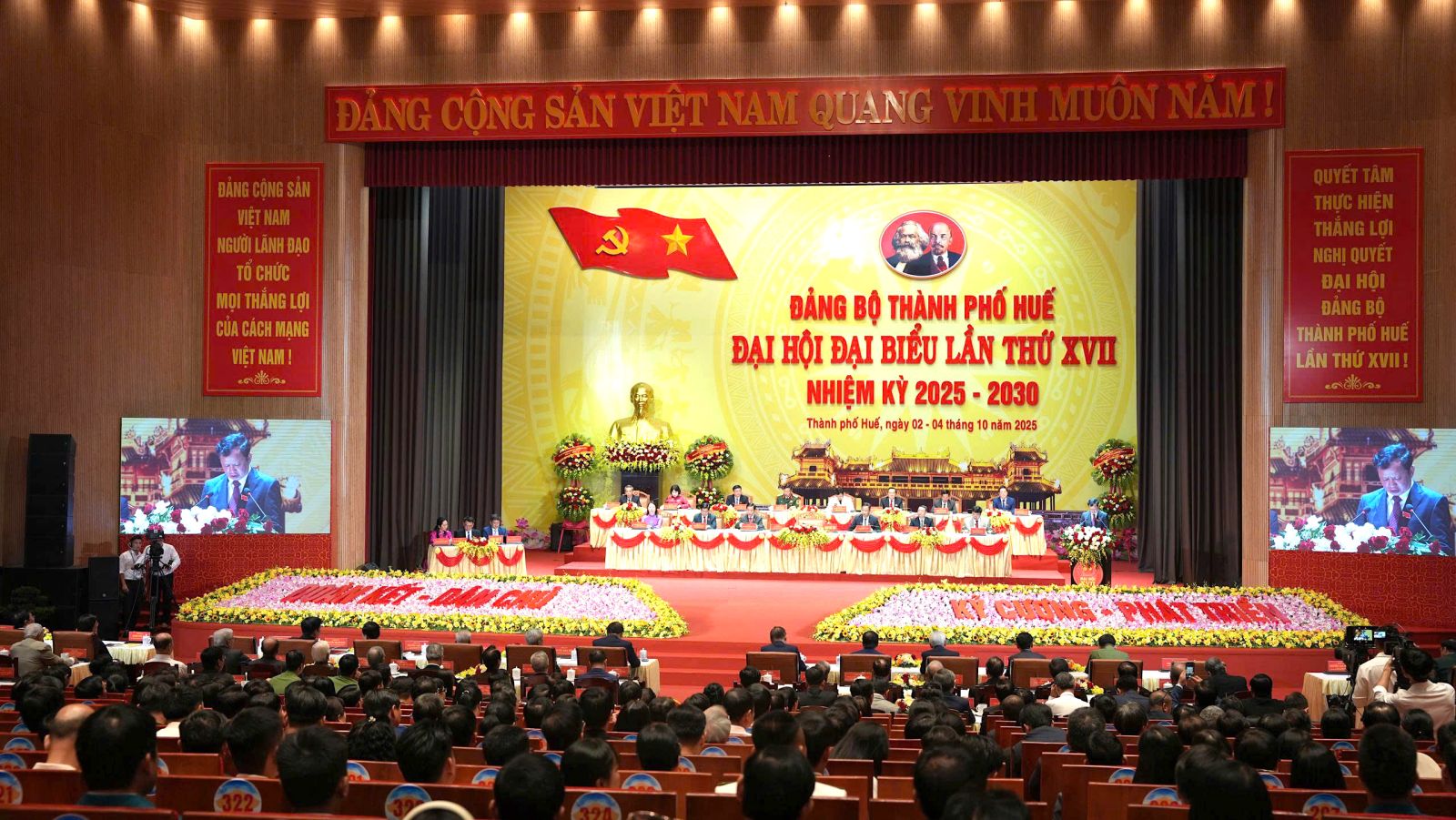 (ĐCSVN) - Sáng 3/10, tại Nhà hát Sông Hương, Đại hội đại biểu Đảng bộ thành phố Huế lần thứ XVII, nhiệm kỳ 2025 - 2030 khai mạc trọng thể. Đại tướng Lương Tam Quang, Ủy viên Bộ Chính trị, Bộ trưởng Bộ Công an dự và chỉ đạo Đại hội.