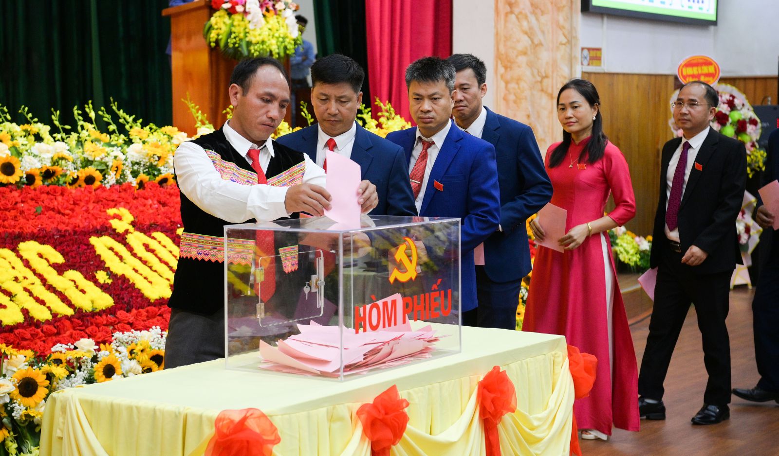 Các đại biểu bỏ phiếu bầu Ban Chấp hành Đảng bộ tỉnh Điện Biên khóa XV, nhiệm kỳ 2025 - 2030.
